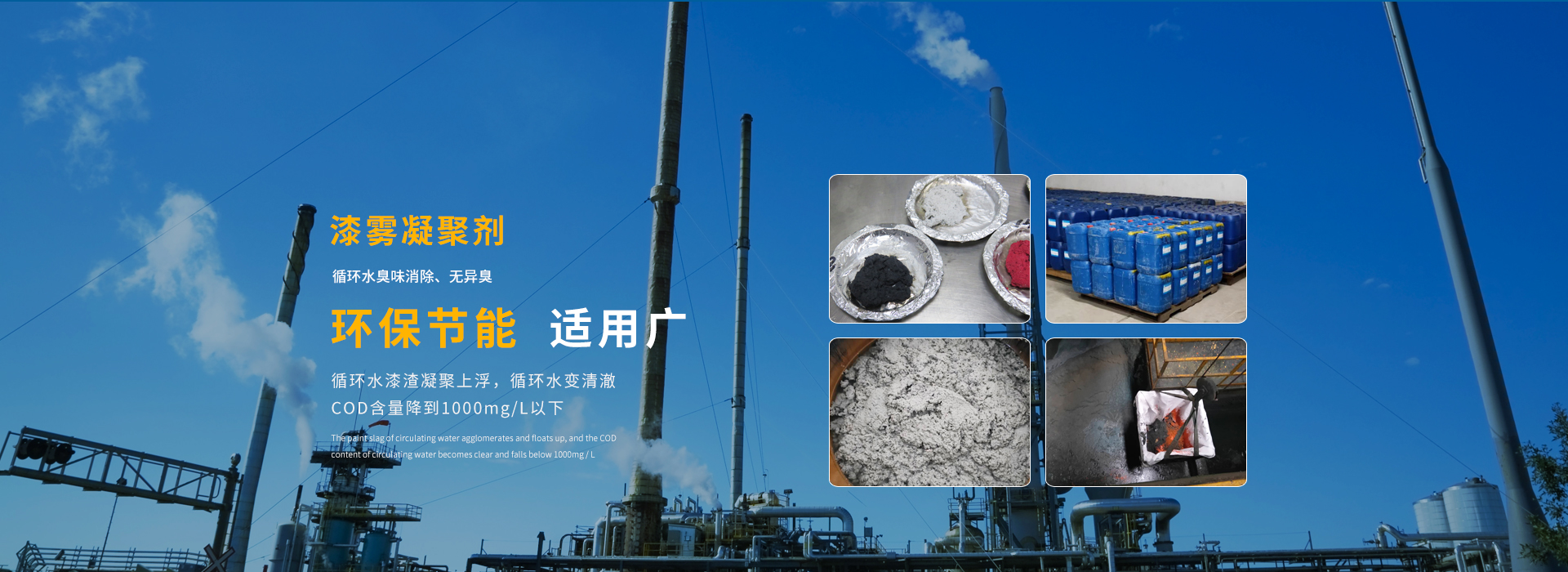 漆霧凝聚劑由破粘劑和絮凝劑組成,破粘劑大多由中等分子量的陽離子聚合物組成,電荷極高,對漆滴能產(chǎn)生很強(qiáng)的吸引力,當(dāng)漆滴被“捕捉”吸附后它利用二極不同的親和性將漆滴完全包裹,并穿透漆滴,破壞涂料的功能基團(tuán),使其完全消除粘性,并帶動被包裹破粘的漆滴上浮。絮凝劑大多由分子量幾千萬的聚合物組成,通過在分子之間的“架橋”作用,聚集被破壞的漆霧和雜質(zhì)成較大的基團(tuán),使其堅(jiān)固和粘合,增強(qiáng)機(jī)械脫水的效率。絮凝劑還可中和系統(tǒng)電荷,保持系統(tǒng)中的離子平衡,且分子量較大,使凝集基團(tuán)在系統(tǒng)中上浮速度加快,并結(jié)成漆渣浮于水面。